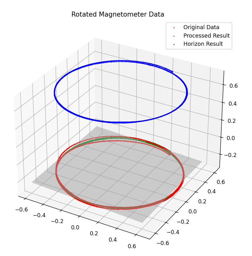 \[\displaylines{ A = \begin{bmatrix} A_{xx} &A_{xy} &A_{xz}\\ A_{xy} &A_{yy} &A_{yz}\\ A_{xz} &A_{yz} &A_{zz} \end{bmatrix} }\] \[\displaylines{ \beta_{min} = [\beta_0, \beta_1, \beta_2, \beta_3, \beta_4, \beta_5, \beta_7, \beta_8, \beta_{9}]^T\\[1mm] A = \begin{bmatrix} \beta_0 &\beta_1 &\beta_2\\ \beta_1 &\beta_3 &\beta_4\\ \beta_2 &\beta_4 &\beta_5 \end{bmatrix}\\[1mm] V = -\frac{1}{2}A^{-1}\begin{pmatrix}\beta_6\\ \beta_7\\ \beta_8\end{pmatrix}\\[1mm] W^{-1} = \sqrt{A} }\]Non-Homogeneous(only hard iron compensation)